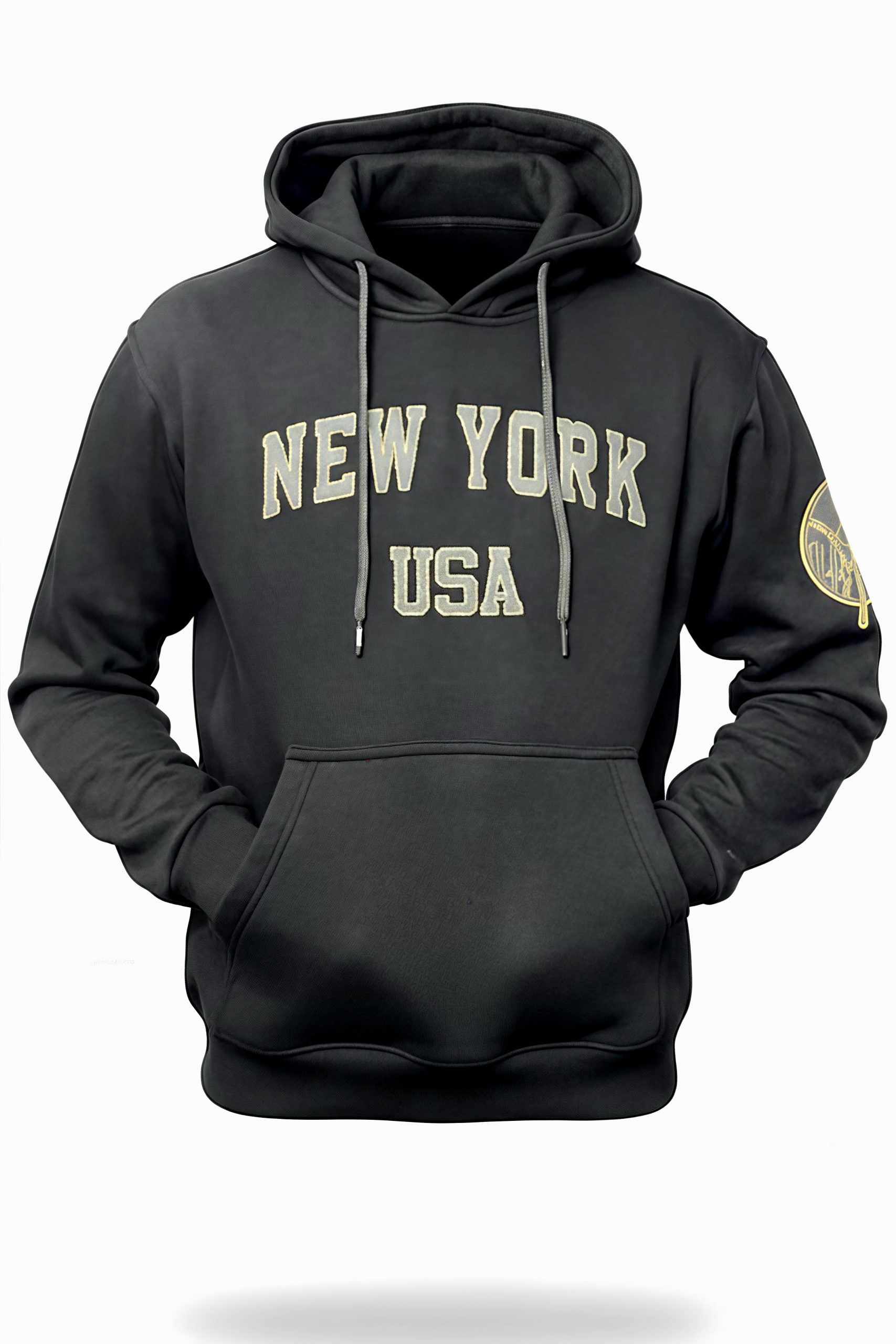 - Bold City Graphic and Patches – The chest features a striking “NEW YORK USA” colleg